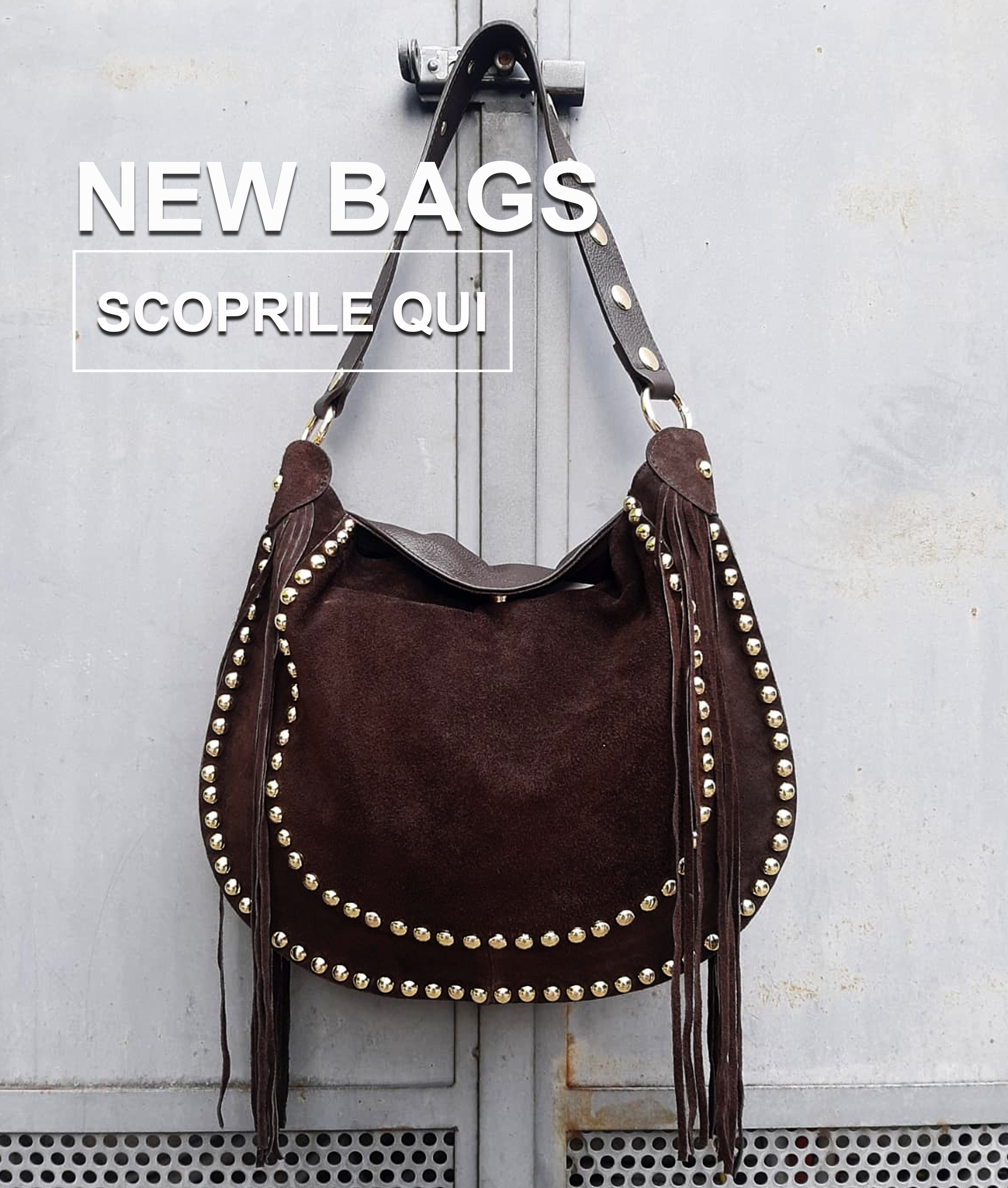 Pasinetti maxi-bag in camoscio cioccolato con frange e borchie