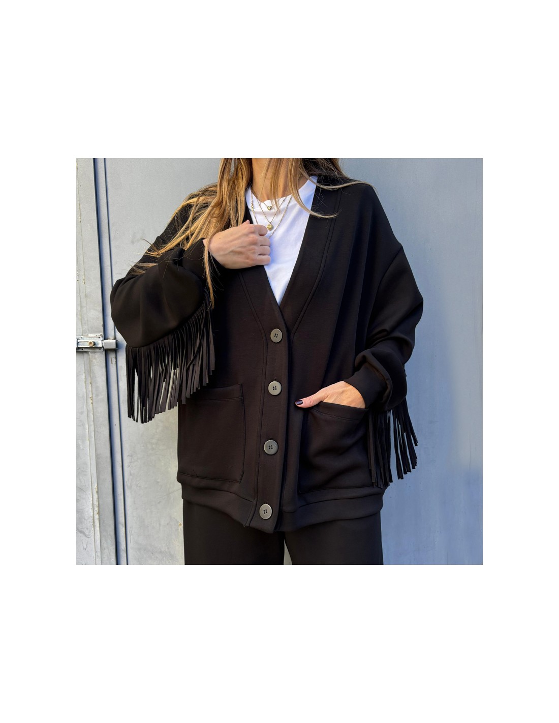 New Felpe / Tute LUMINA Lumina felpa/cardigan LD3644 marrone COLORE: MARRONE TAGLIA: UNICA 49,90 € Felpa/cardigan in viscosaScollo a V profondoMaxi-tasche applicate sul davantiCarré dietro e maniche con frangeCOMPOSIZIONE: 50% POLIESTERE 46% VISCOSA 4% ELASTOMEROCOD.LUMINA CARDIGAN LD3424 MARRONE Visualizza