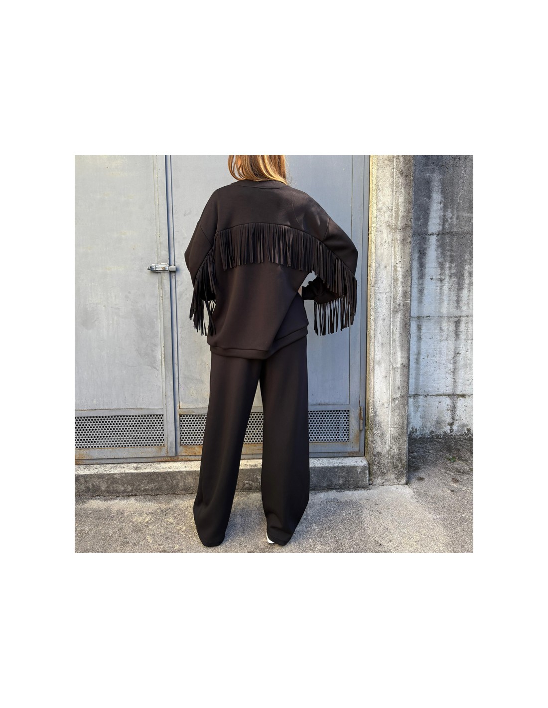 New Felpe / Tute LUMINA Lumina felpa frange fango COLORE: FANGO TAGLIA: UNICA 39,90 € Felpa in tessuto effetto neopreneFrange sulle maniche e sulla schienaCOMPOSIZIONE: 50% POLIESTE 46% VISCOSA 4% ELASTOMEROCOD.LUMINA FELPA LD3377 FANGO Visualizza