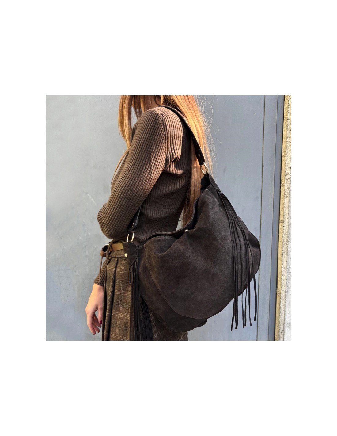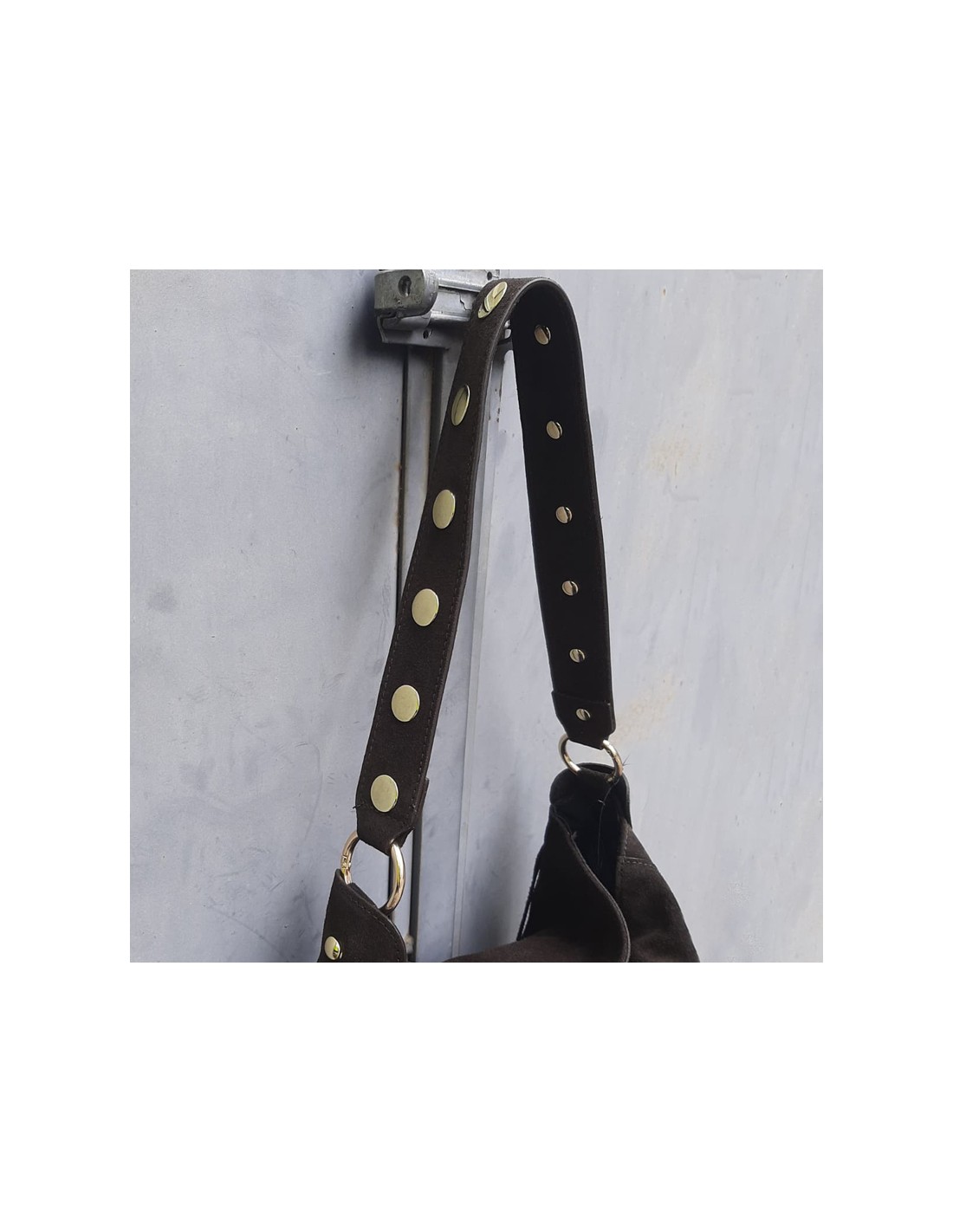 Dotata di manico fisso con borchie dorate, tracolla removibile e regolabile.
