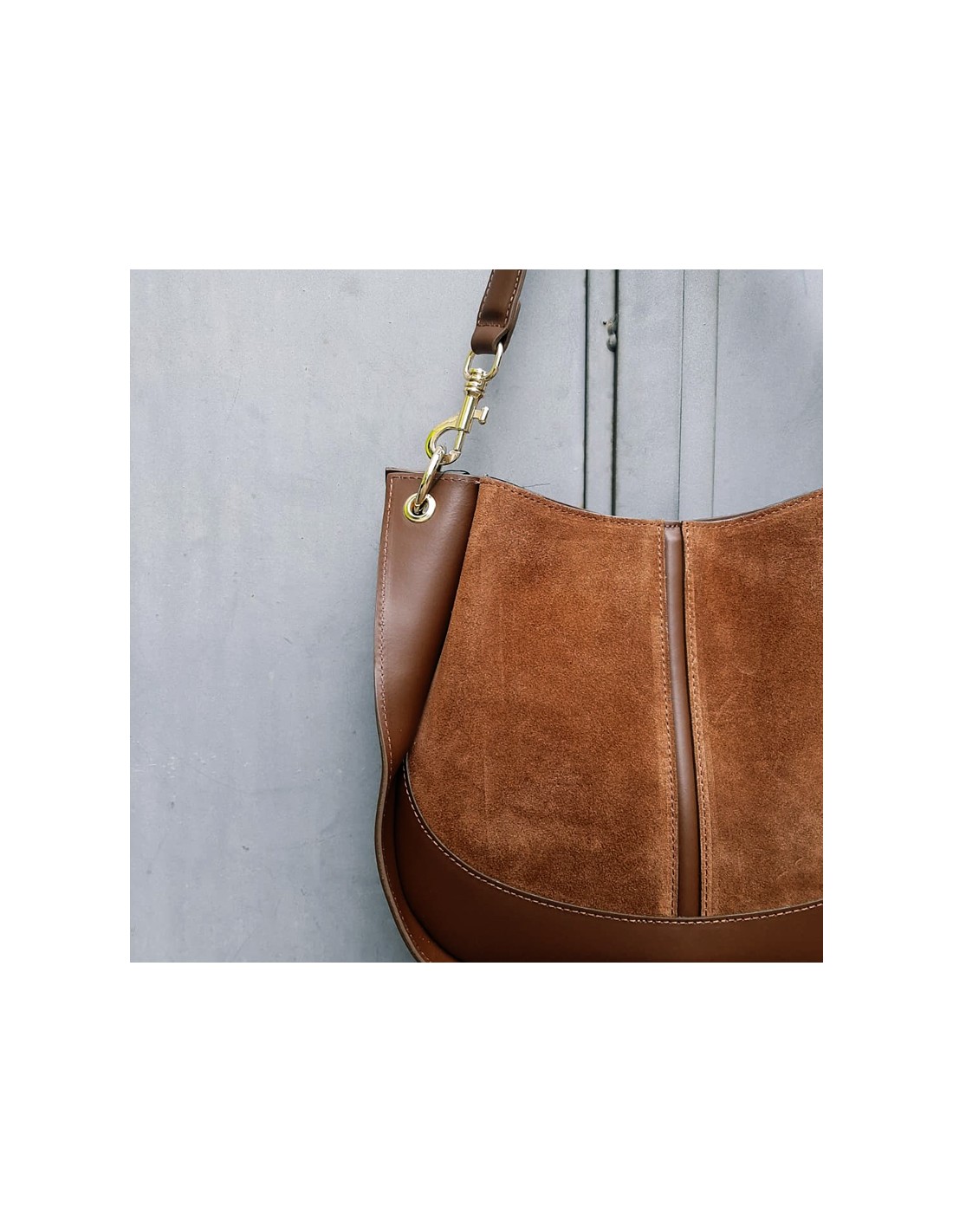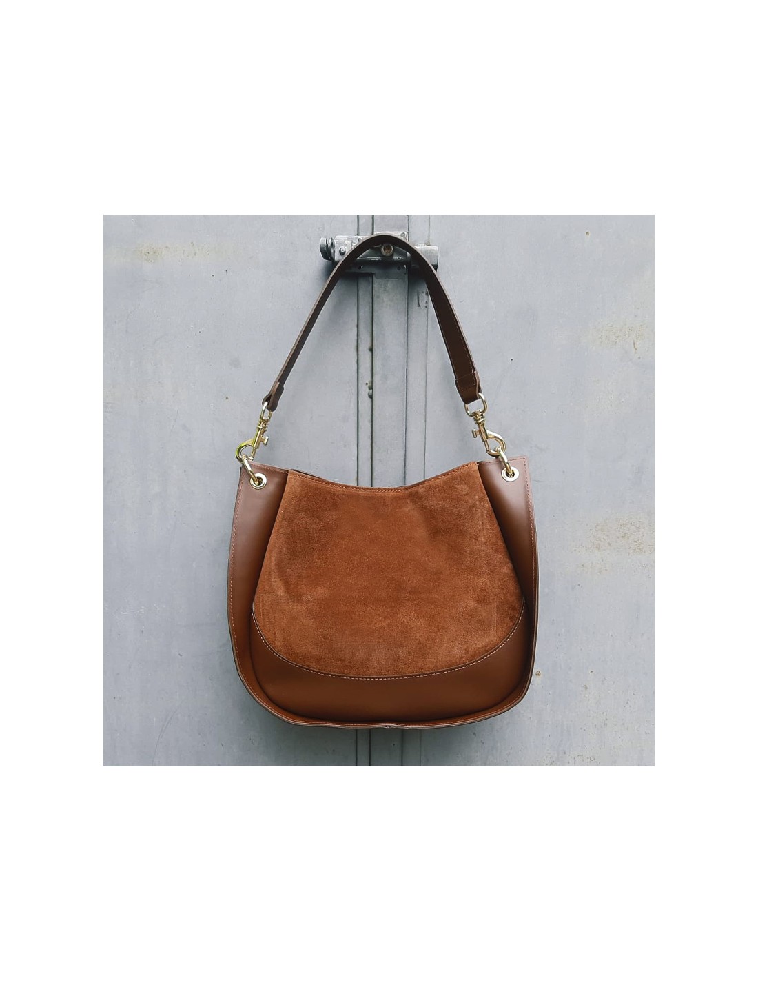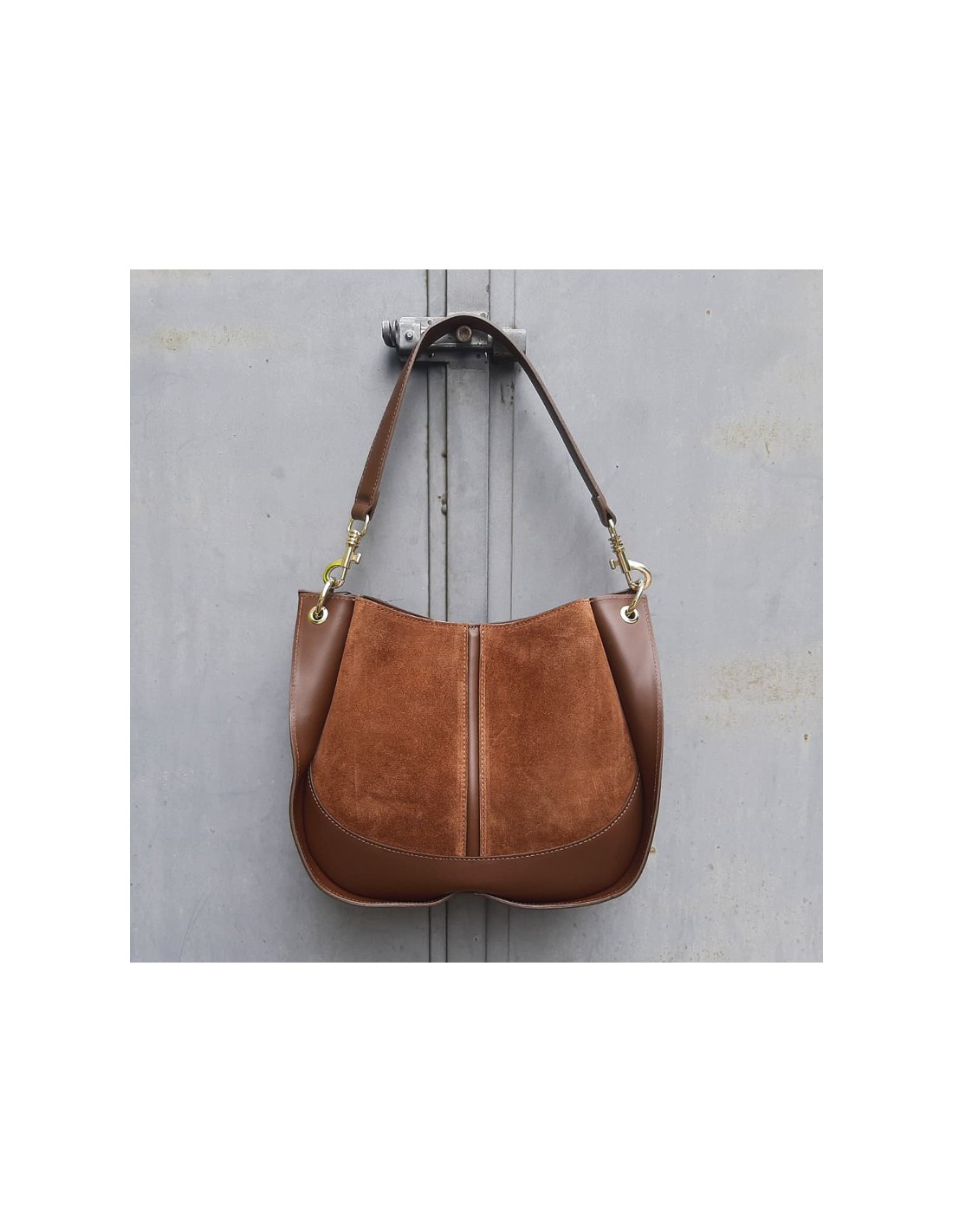 Borsa maxi in pelle scamosciata e liscia cuoio.