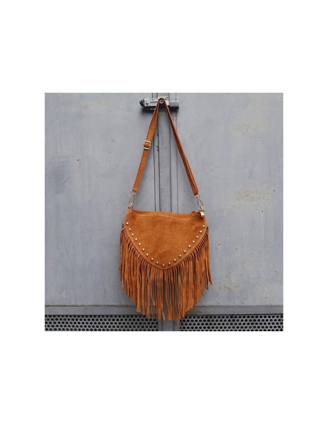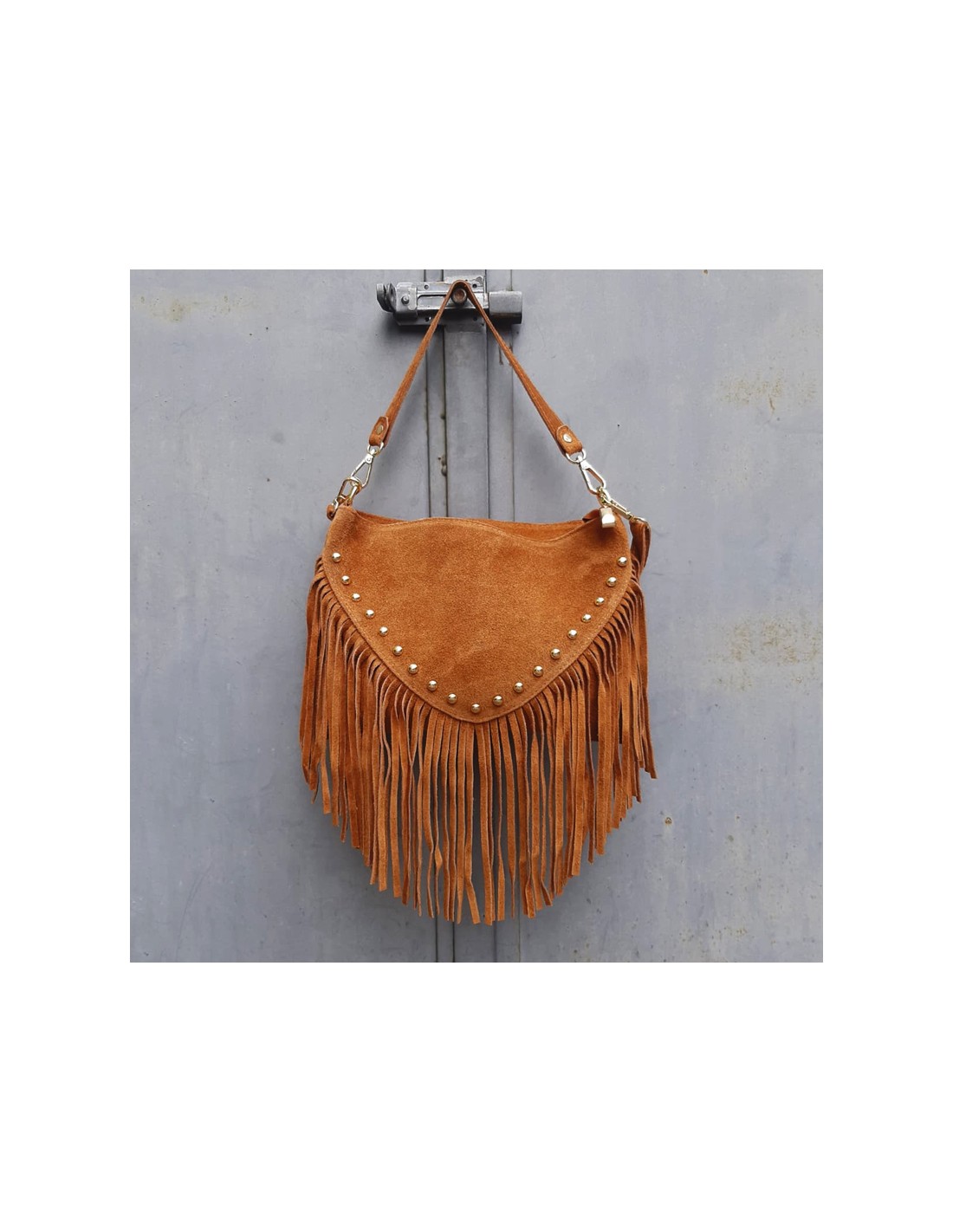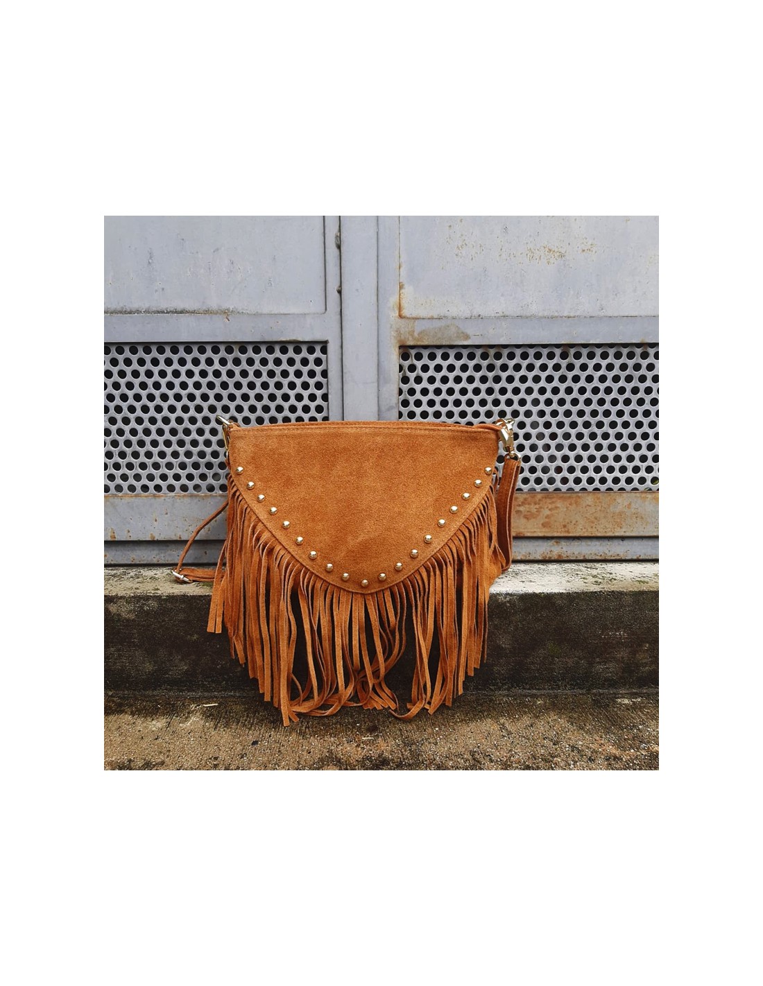 Borsa a busta scamosciata cuoio con frange