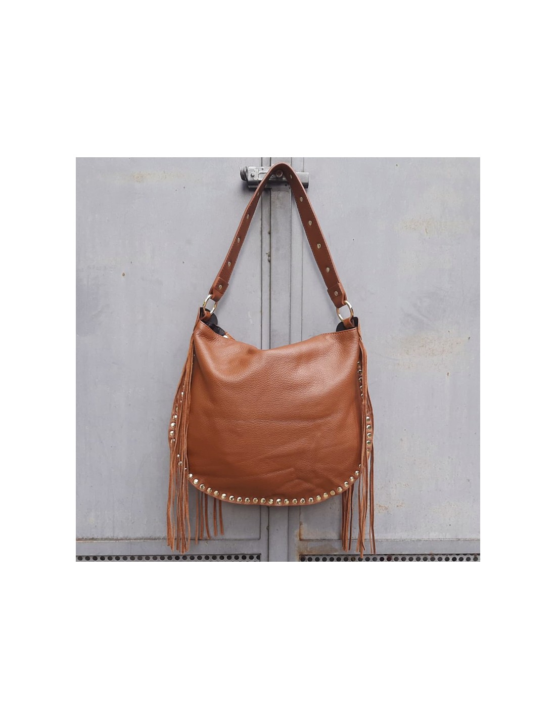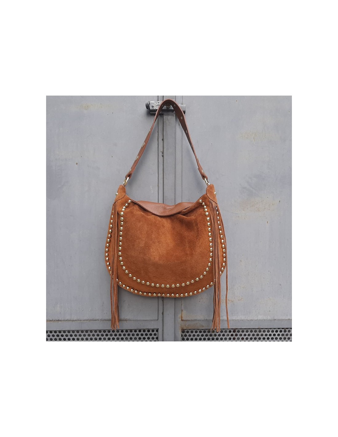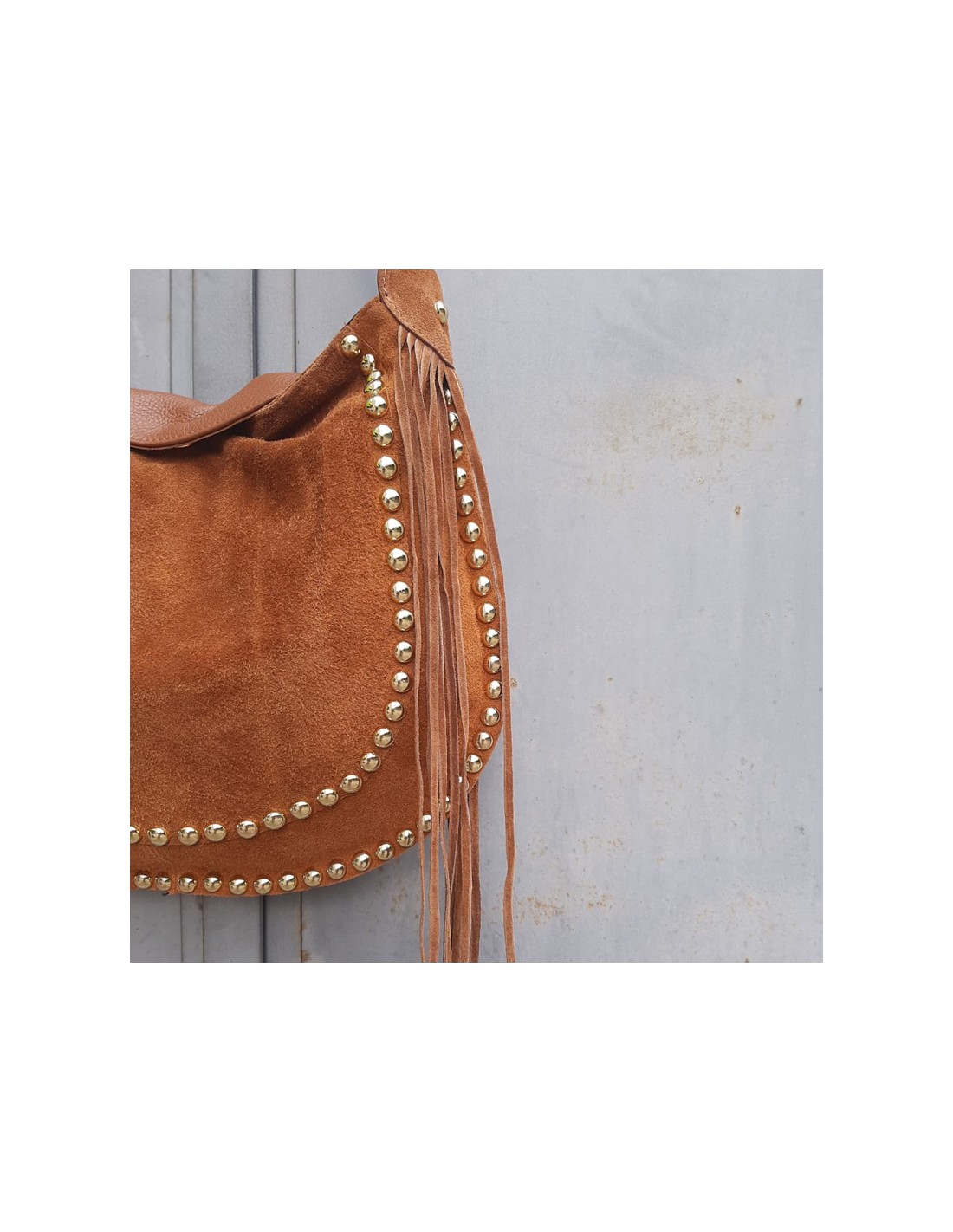 Borchie a sfera dorate applicate lungo il perimetro della borsa e sul manico
