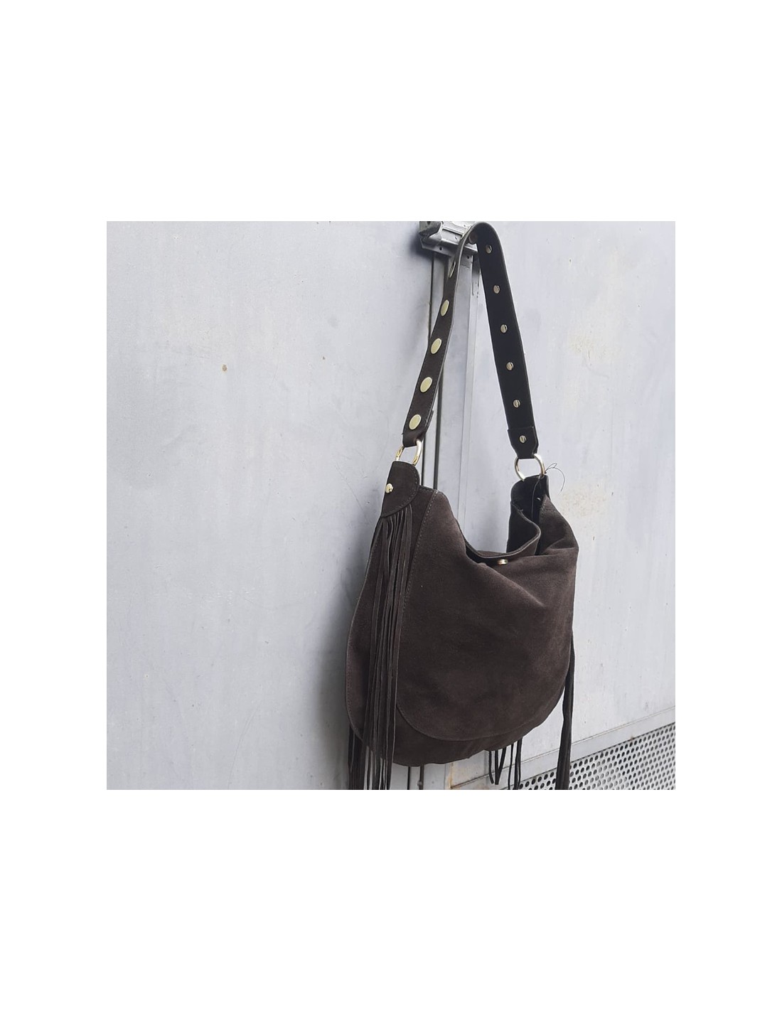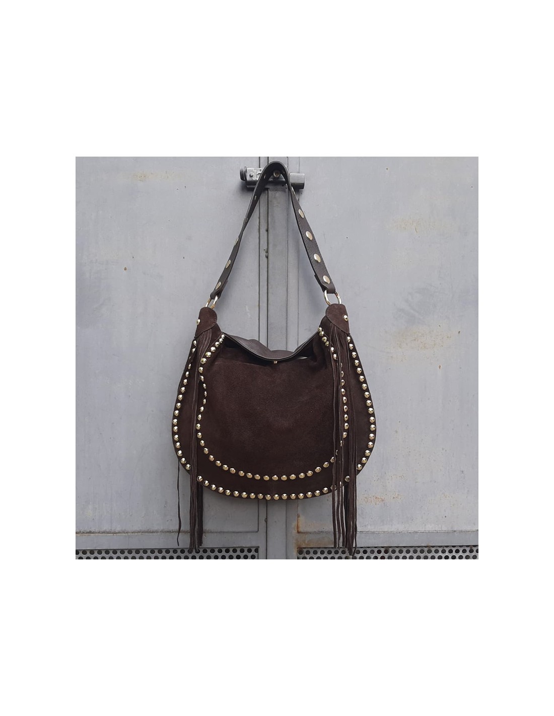 Pasinetti maxi-bag in camoscio cioccolato con frange e borchie
