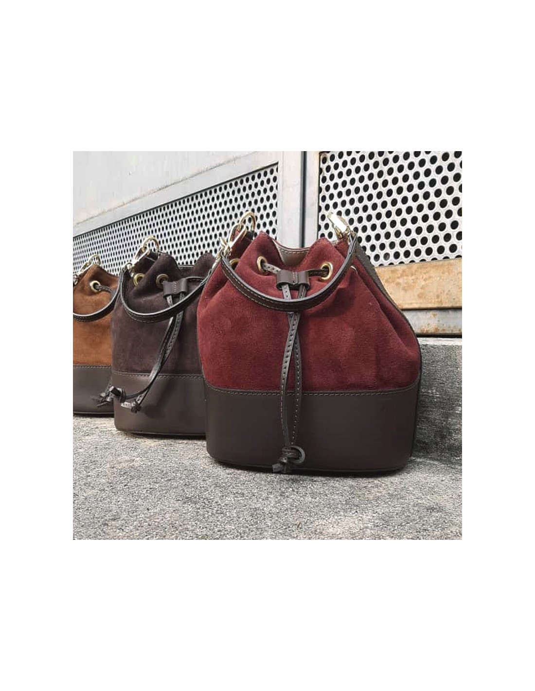 Secchiello combinato in pelle scamosciata e liscia