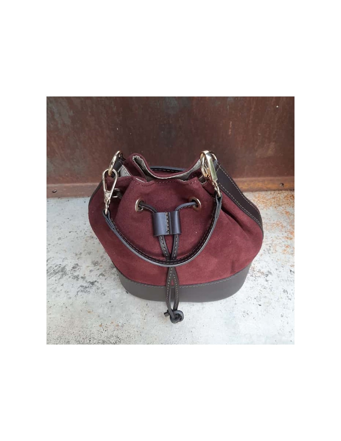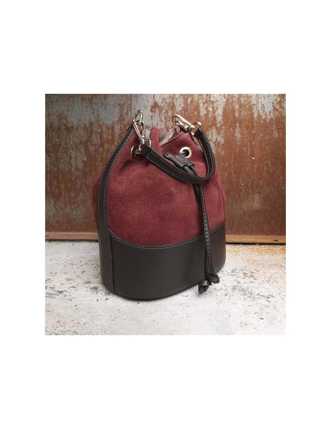 Secchiello bordeaux pelle liscia+camoscio
