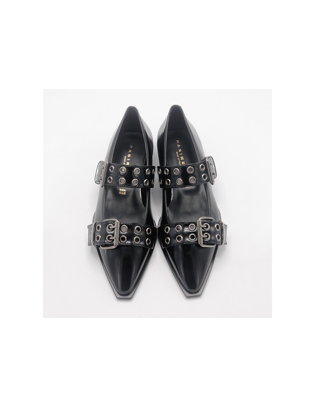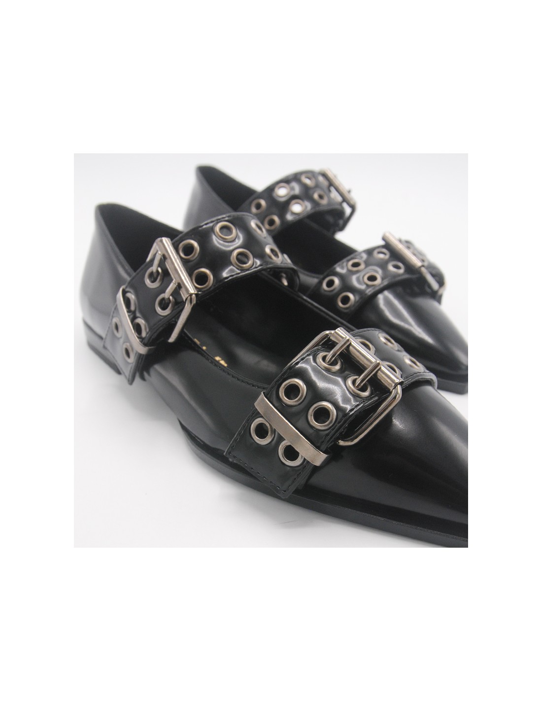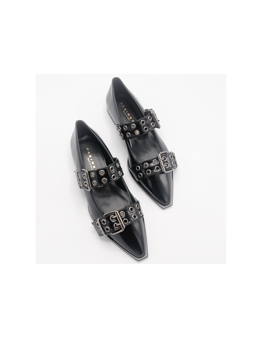 Pasinetti ballerina bordeaux con anellini e fibbie
