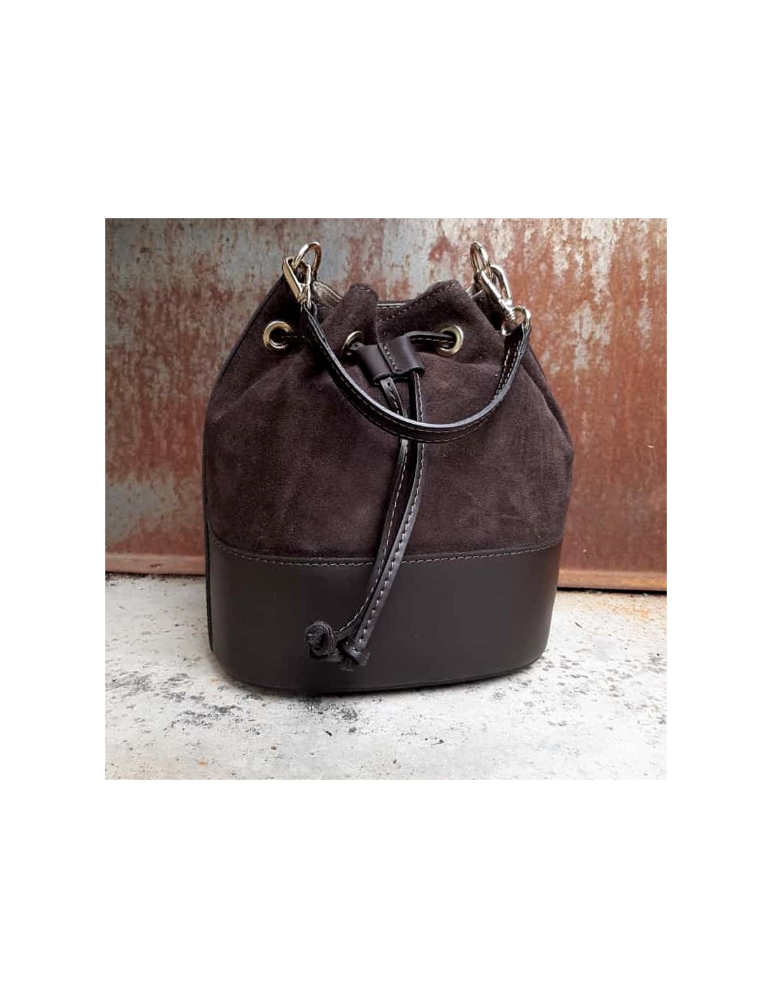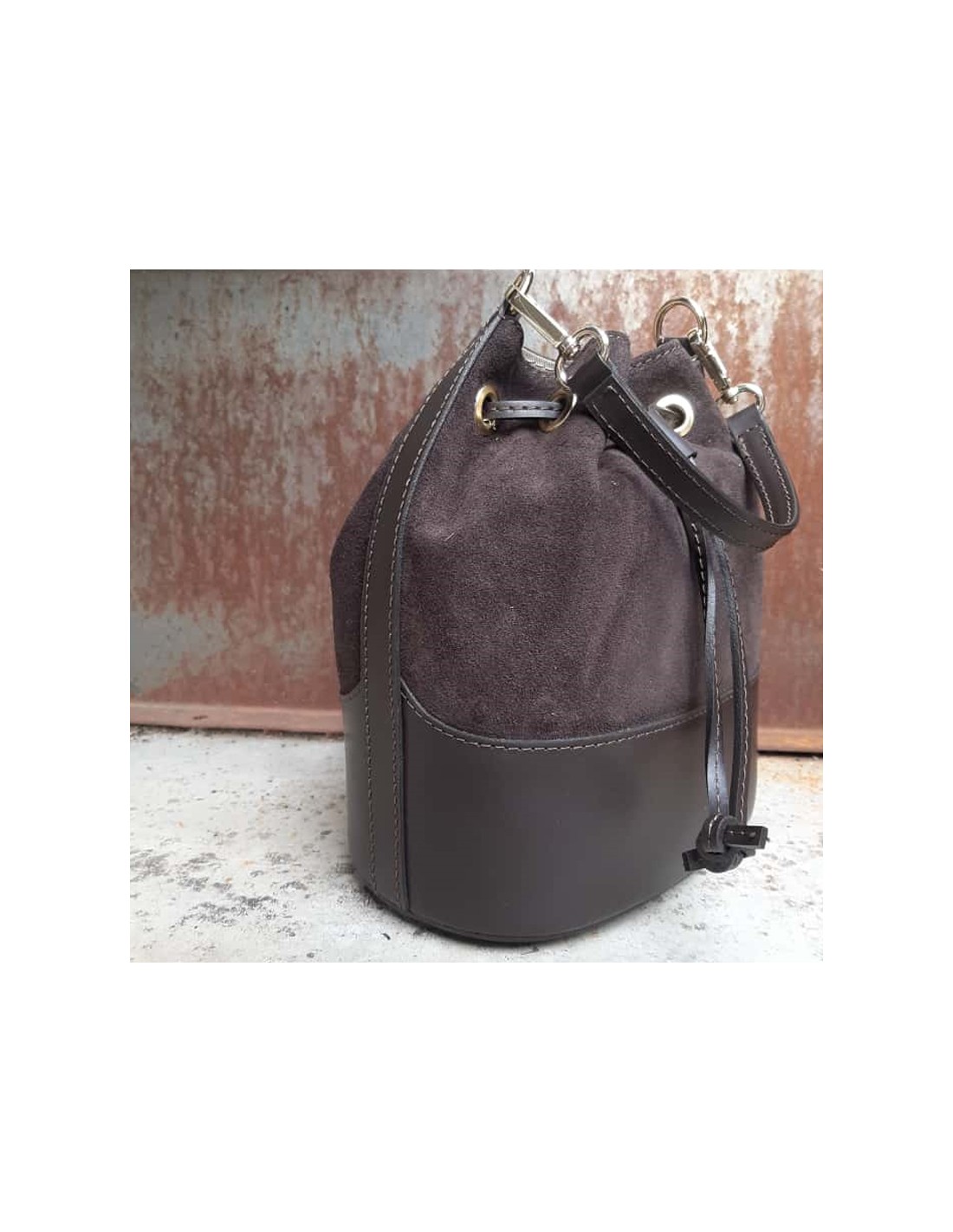 Secchiello combinato in pelle scamosciata e liscia