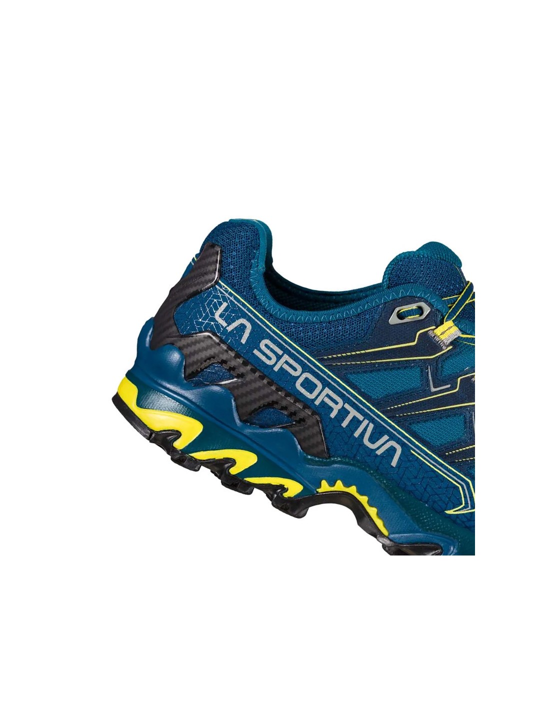 Re-edit estetico del celebre modello Ultra Raptor, calzatura da trail running sviluppata per percorsi off-road a lunga distanza e sessioni di allenamento prolungate. La tomaia è in tessuto air-mesh altamente traspirante ed è assemblata integrando una piattaforma ammortizzante “Endurance Platform” in EVA morbida a spessore differenziato (maggiore in punta, inferiore sul tallone) per un ottimo assorbimento dell’impatto in qualsiasi situazione e riduzione del ramp-angle. La tallonetta stabilizzante posteriore permette un perfetto controllo sui traversi. Il sistema di allacciatura è integrato con la tomaia a mezzo di passanti cuciti sul tessuto elastico interno e con rinforzi in alta frequenza sul mesh esterno: tale sistema permette di ripartire la tensione dell’allacciatura su tutta la tomaia ed avvolgere al meglio il piede per un perfetto comfort di calzata. Lacci e plantare Ortholite® Hybrid sono inoltre realizzati in materiali riciclato. Ultra Raptor II è disponibile anche in versione comfort wide-fit dedicata ai runner con piede a pianta larga. Il risultato è una calzatura da ultra running indossabile per molte ore consecutive ed adatta per utilizzi off-road su qualsiasi tipo di terreno. Raptorize yourself, again.