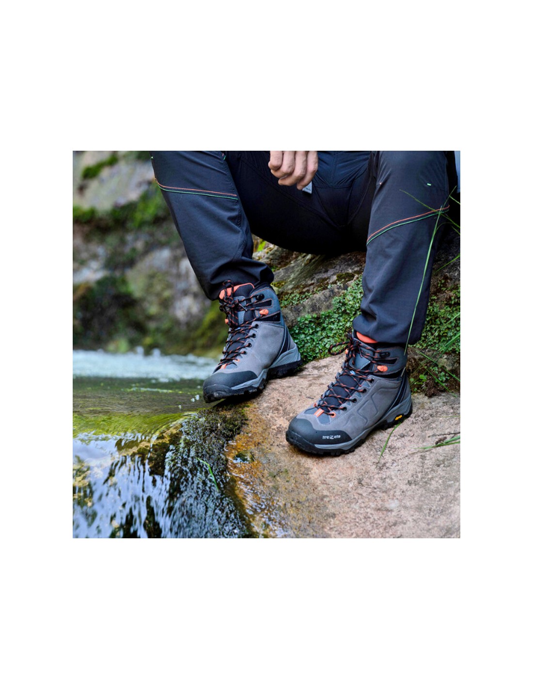 TREZETALa morbida tomaia in suede waterproof e tessuto accoglie comodamente il piede, mentre la fodera traspirante in mesh agevola il comfort climatico ottimale all’interno della calzatura. Per proteggere con efficacia l’interno dalle intemperie, Trezeta ha sviluppato la tecnologia Trezeta Water Stopper, una membrana che impedisce agli elementi esterni di penetrare nella calzatura. Il puntale è protetto dalla tecnologia spray rubber, che isola la punta ed è stampata direttamente sulla tomaia. Piede asciutto e sempre protetto: l’intersuola in EVA a doppia densità ammortizza l’appoggio per ridurre gli impatti al suolo, minimizzare le vibrazioni e accompagnare il passo. La suola Vibram® Inverness è dotata di un’ampia zona di appoggio per la massima stabilità, con tassellatura aperta e autopulente. La suola a profilo alto protegge il piede su terreni difficili.