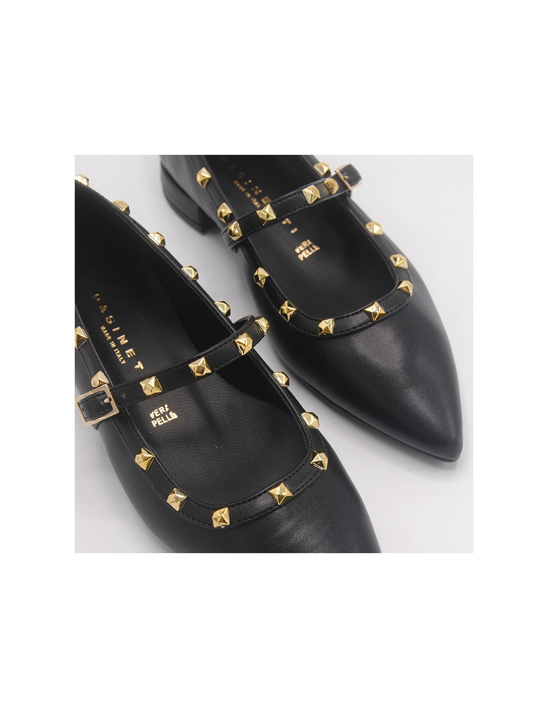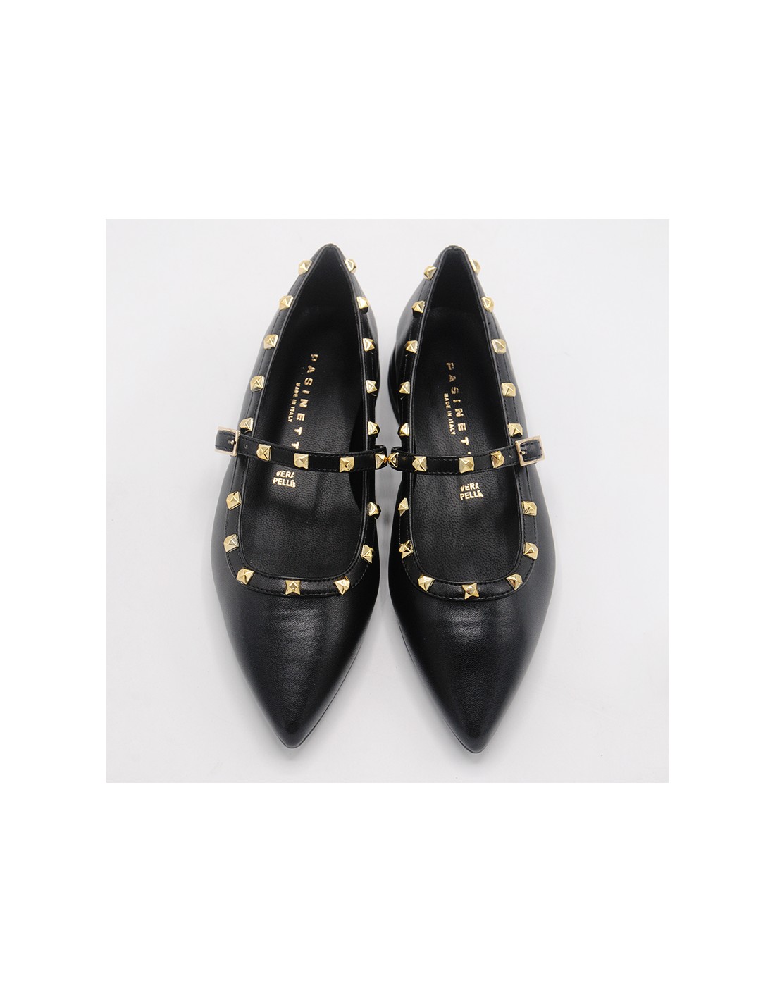 Pasinetti ballerina bordeaux con anellini e fibbie