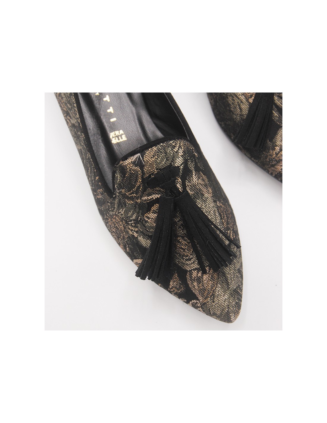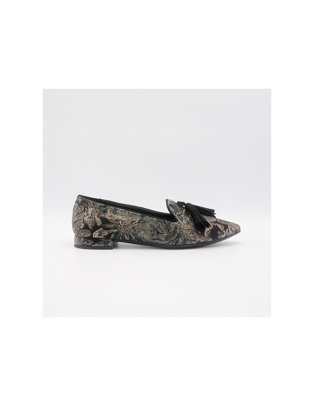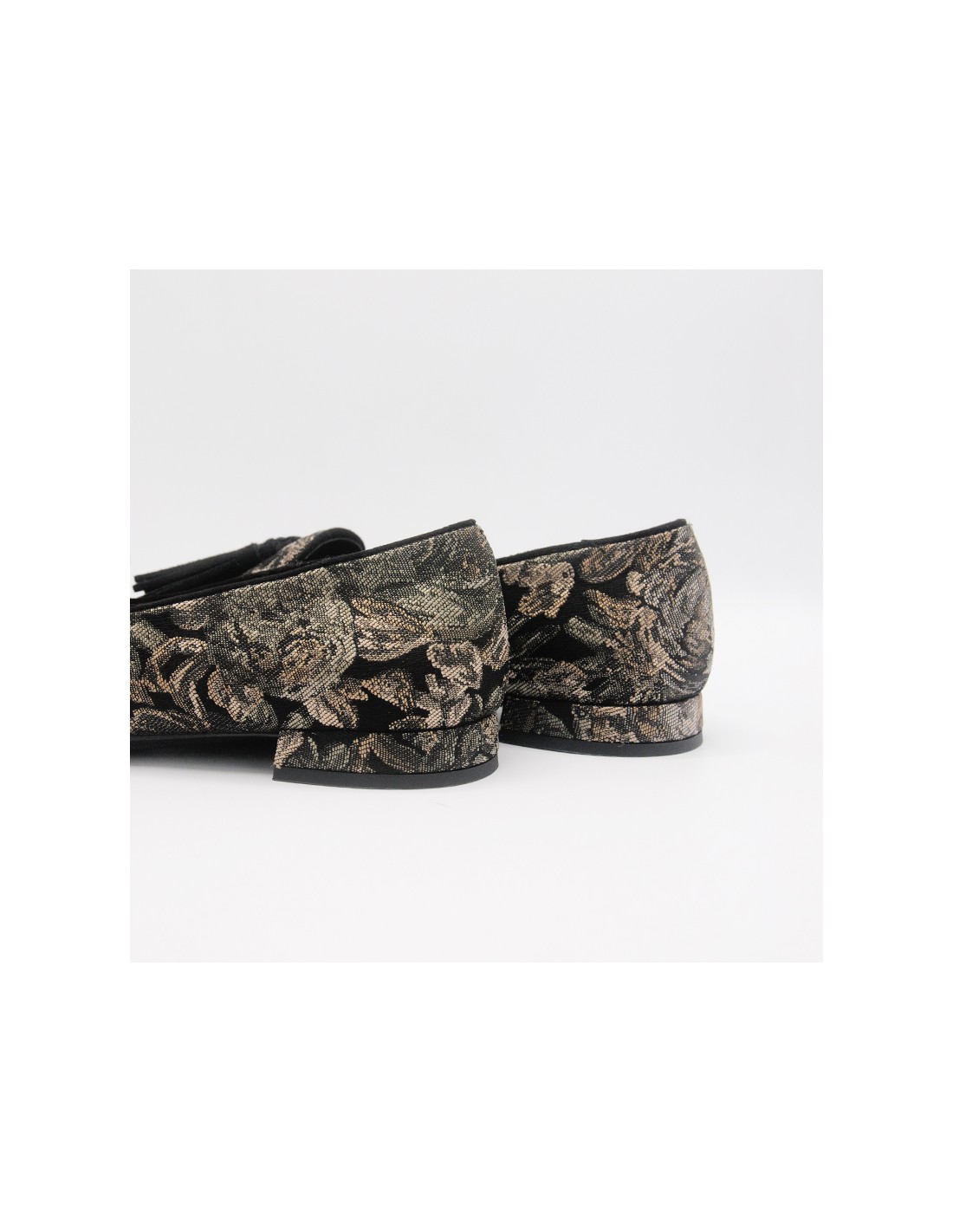 Ballerina in tessuto damascato con profili neri scamosciati
